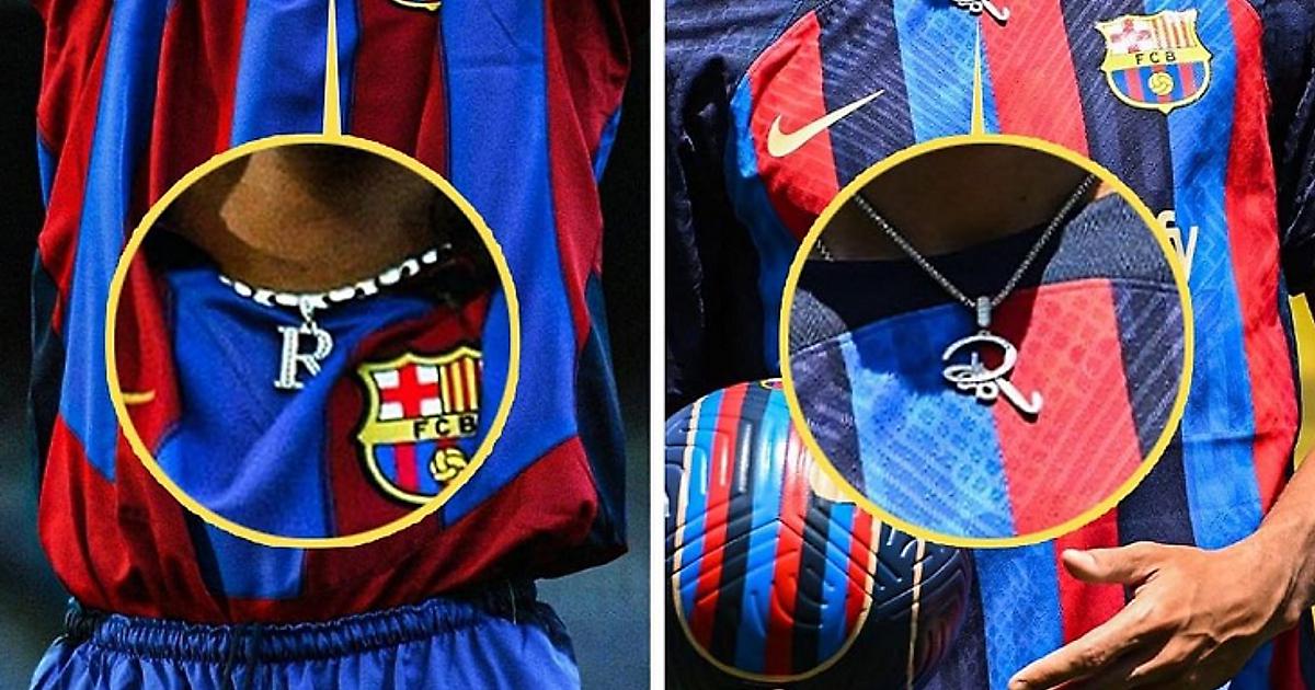 На презентации новичок «Барсы» не удержался от отсылки, надев цепочку с буквой R.