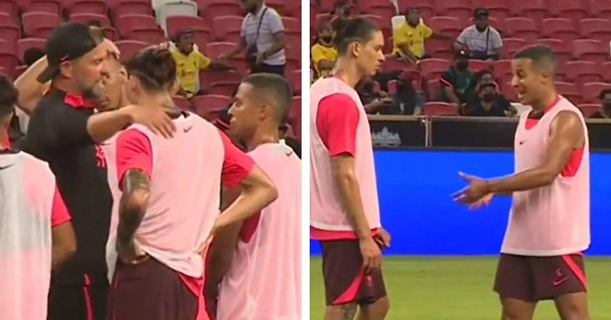 Однако во время разговора Клопп в основном смотрел на Тиаго Алькантару, который стоял рядом с Нуньесом.