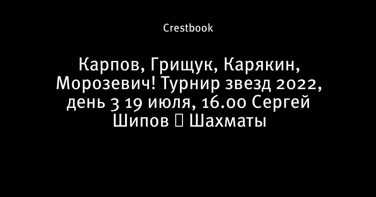 Карпов, Грищук, Карякин, Морозевич! Турнир звезд 2022, день 3 👑 19 июля, 16.00 🎤 Сергей Шипов ♕ Шахматы