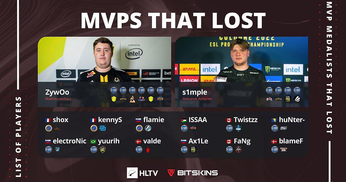 Портал HLTV предоставил список игроков, которые получали MVP после поражения в финале.