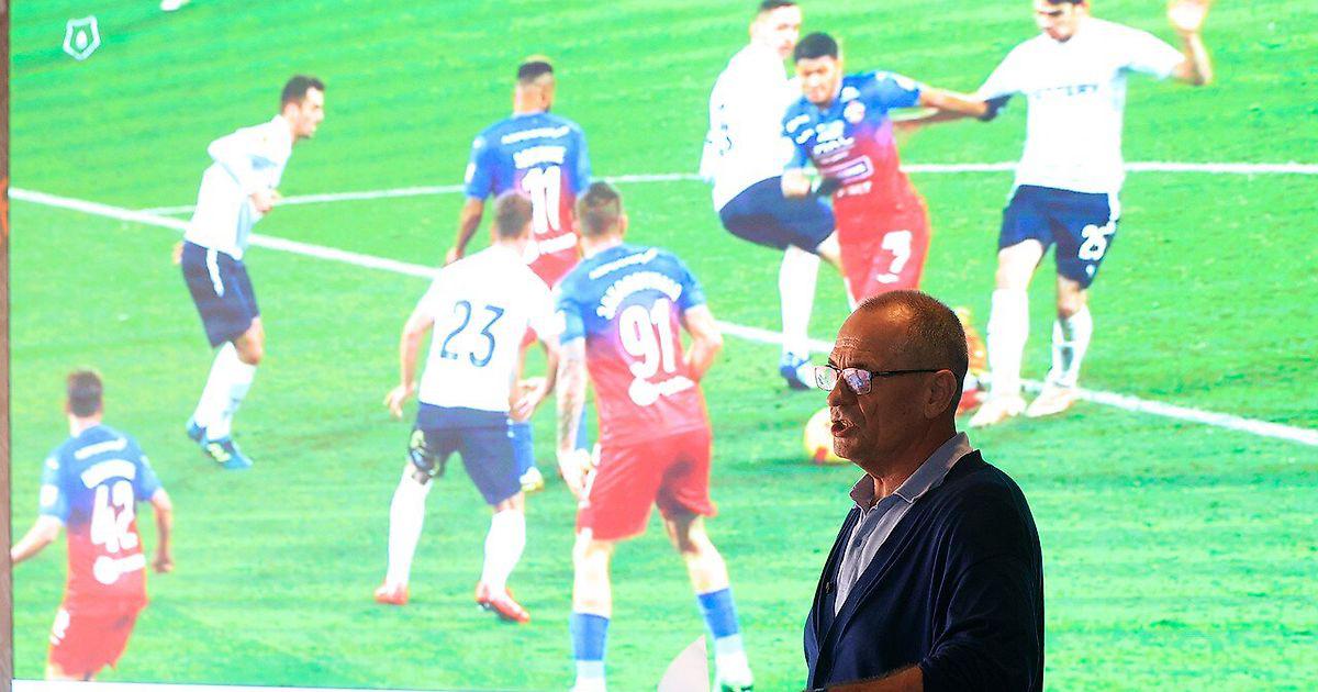Опытнейший Левников демонстрировал на большом экране фрагменты международных матчей, затем сравнивал их с похожими ситуациями в играх с участием «Спартака» и объяснял, какое решение и почему с точки зрения современных правил является верным.