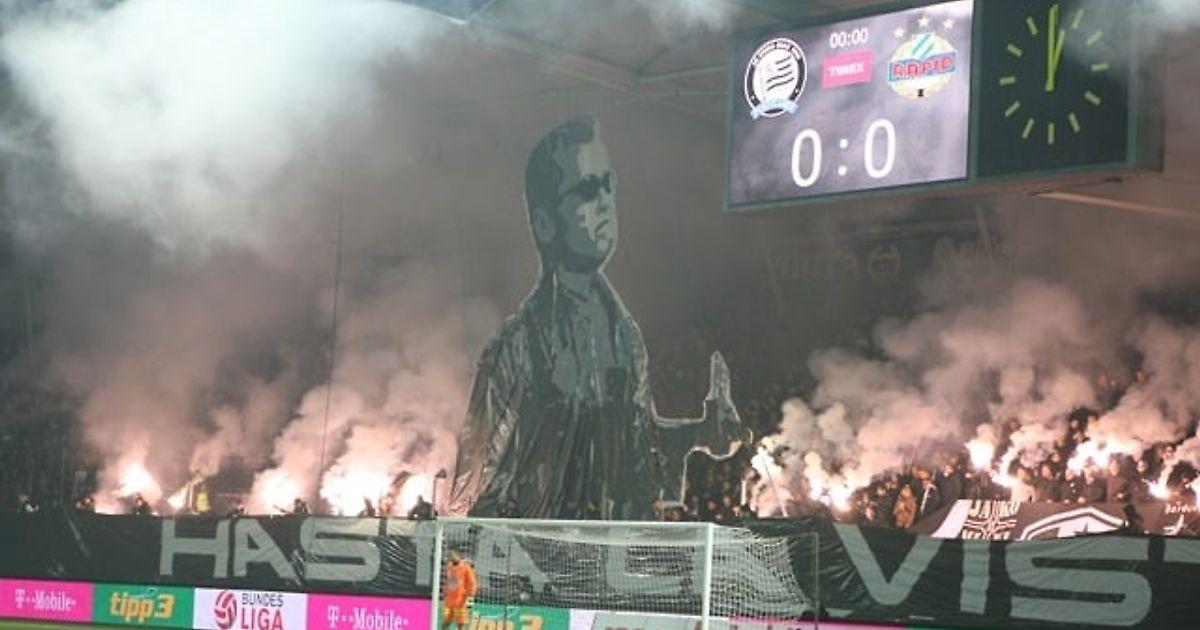 Образ героев Шварценеггера из различных фильмов появляется и на фанатских трибунах.
