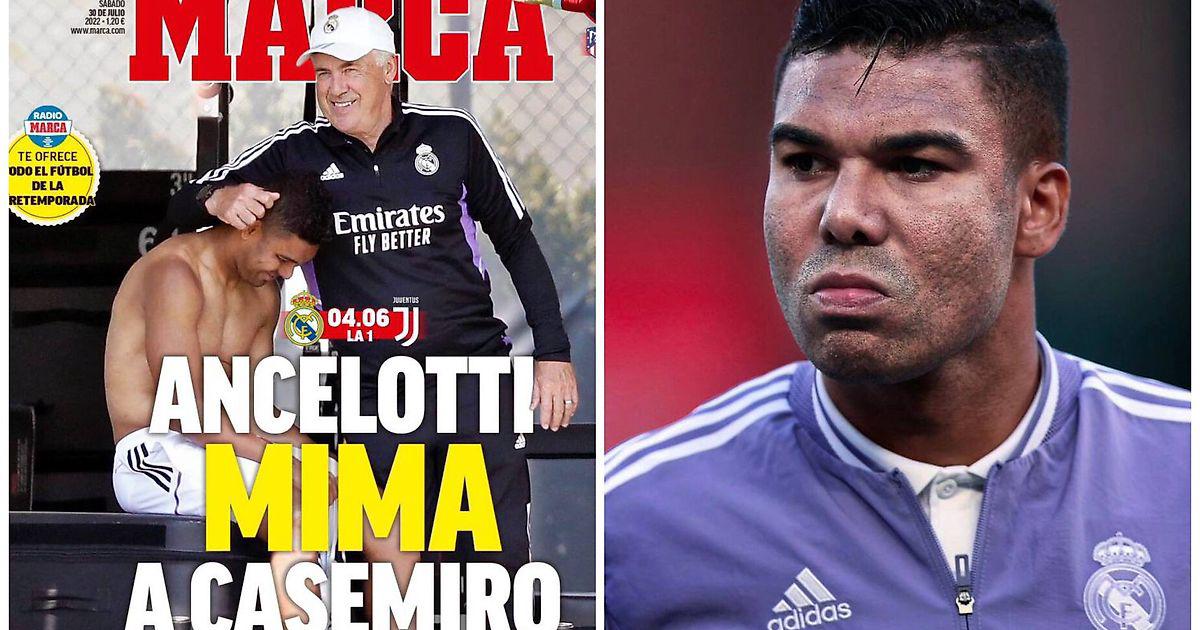 Сегодня на обложке Marca красовалась вот такая фотография с подписью: «Анчелотти вселяет уверенность в Каземиро. Он бесспорный игрок старта».