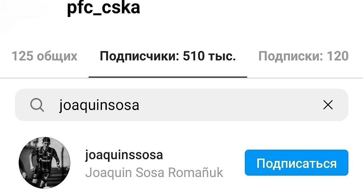 Хоакин Соса подписался на аккаунт ПФК ЦСКА