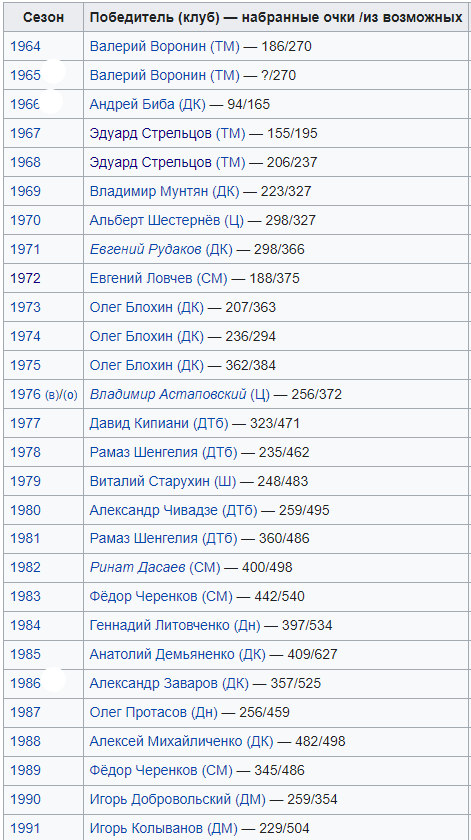 Интересный факт: в 1986 году И. Беланов получил «Золотой мяч», а звание лучшего в стране, уступил А. Заварову. Все победители «Футболист года» в СССР. Что не имя, то легенда.