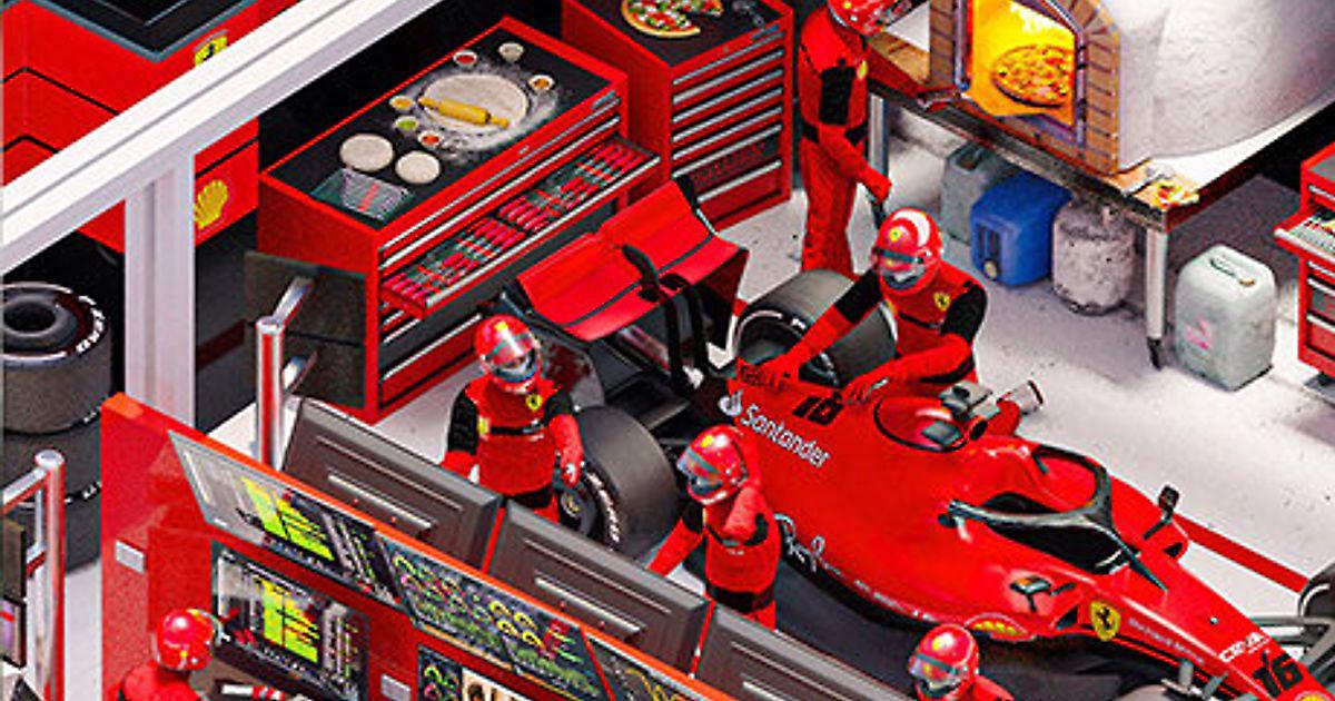 Что творится в гараже «Феррари»? Печь для пиццы, зал под стенды с 5 планами на гонку и секретные чертежи в ксероксе – идеи фаната-художника