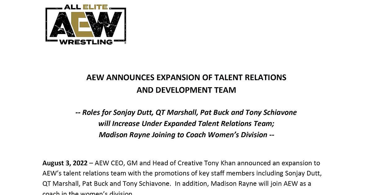 AEW объявили о расширении команды по работе с исполнителями и развитию
