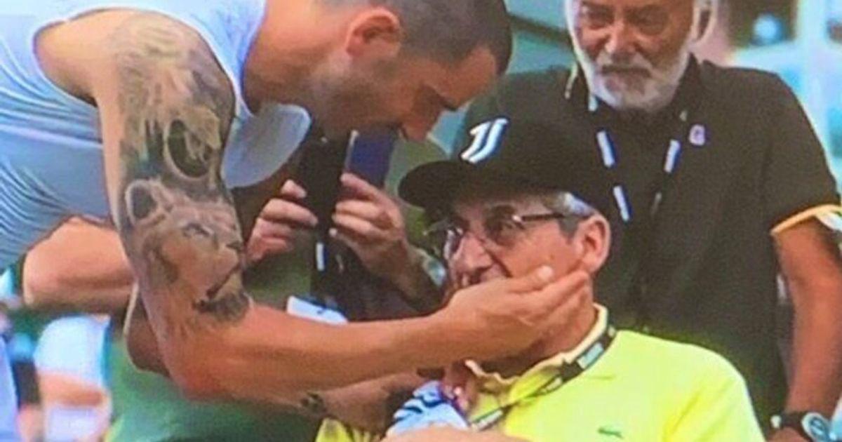 После замены в Виллар-Перозе Леонардо Бонуччи отошел в сторону, чтобы отдать свою футболку легенде «Ювентуса» Беппе Фурино, который в настоящее время прикован к инвалидному креслу из-за недавних проблем со здоровьем.