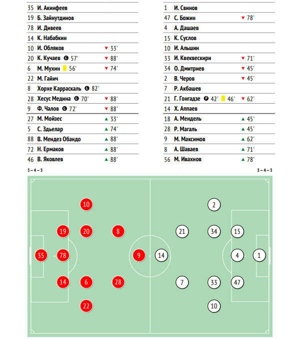 «Спартак» одержал третью победу подряд, очень уверенно переиграв «Урал» в Екатеринбурге. Красно-белые сразу забрали себе инициативу, много владели мячом и в первом тайме дважды поразили ворота Ильи Помазуна. Квински Промес открыл счёт на 27-й минуте. Александр Соболев открылся на правом фланге и после длинной передачи партнёра зацепился за мяч. Форвард «Спартака» смело пошёл в обводку на Ивана Кузьмичёва, дважды его обманул, вошёл в штрафную и прострелил в центр точно на Промеса. Ну а Квинси в одно касание красиво отправил мяч из центра штрафной в дальний угол. А незадолго до перерыва у спартаковцев отличился Михаил Игнатов, экстренно появившийся на поле по ходу первой половины встречи вместо получившего травму Виктора Мозеса. При этом Александр Соболев оформил второй голевой пас. Он открылся на правом фланге и выдал роскошную передачу в штрафную, так что Игнатов выскочил один на один с вратарём соперника и под ногой Ильи Помазуна закатил мяч в сетку.