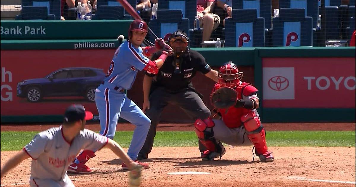В 8 иннинге Брайсон Стотт выбил дабл (9),а Алек Бом с Дэриком Холлом и Ником Кастельяносом прибежали в дом.Затем Брэндон Марш выбил сингл и Брайсон Стотт прибежал в дом.Далее Ник Матон выбил дабл (1) и Брэндон Марш поставил точку в матче.
