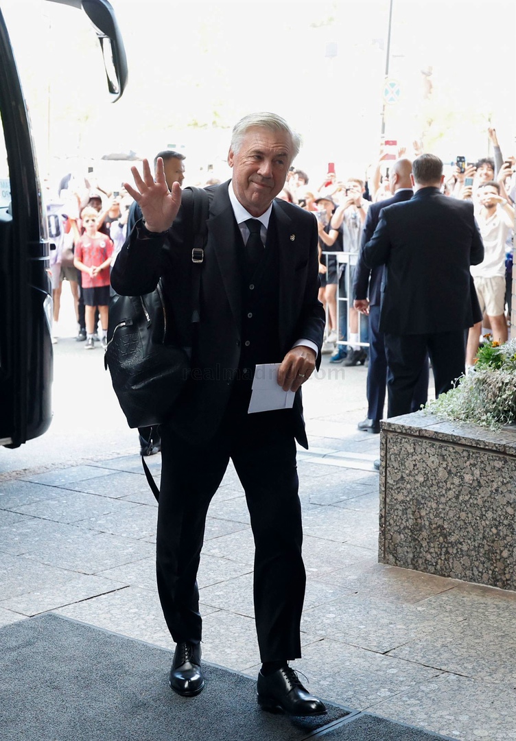 Команда остановилась в отеле Hilton, где отдыхает перед тренировкой, которая пройдет сегодня вечером на стадионе «Олимпико». А уже завтра футболисты Карло Анчелотти попробуют завоевать первый трофей в сезоне.