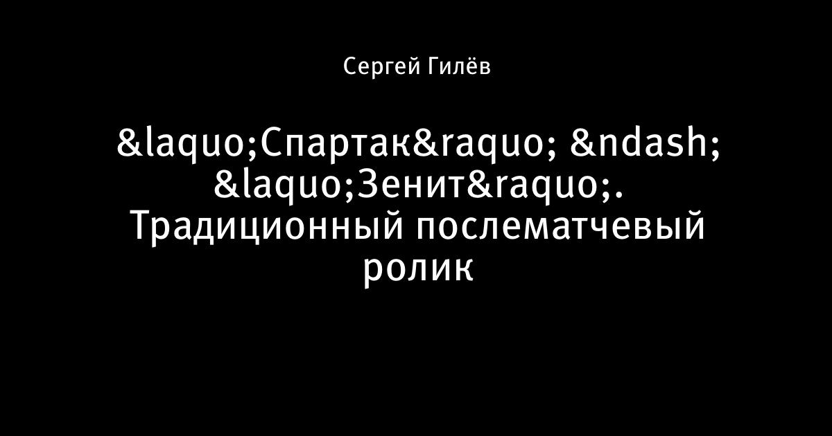 23 ноября 2008, 00:45 «Спартак» – «Зенит». Традиционный послематчевый ролик Автор Сергей Гилёв Этот пост опубликован в блоге на Трибуне Sports.ru. Присоединяйтесь к крупнейшему сообществу спортивных болельщиков! Другие посты блога Разборки в олимпийском Париже