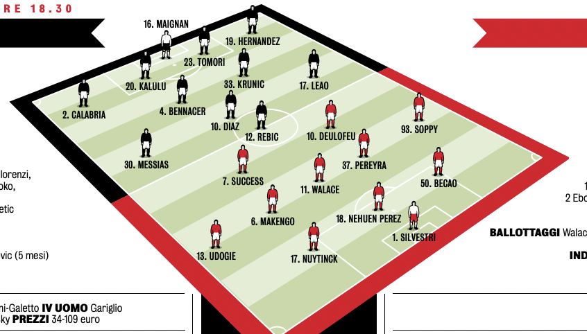 У Милана только 1 потеря, но очень весомая. Сандро Тонали получил повреждение в последней предсезонной игре с Виченцой и пропустит 1 тур. Вместо него в центр поля выйдет Раде "Джокер" Крунич. Свое прозвище он получил неспроста. В прошлом сезоне, когда Раде выходил на поле, Милан побеждал в 11 случаях, 3 раза играл вничью и лишь раз проиграл.