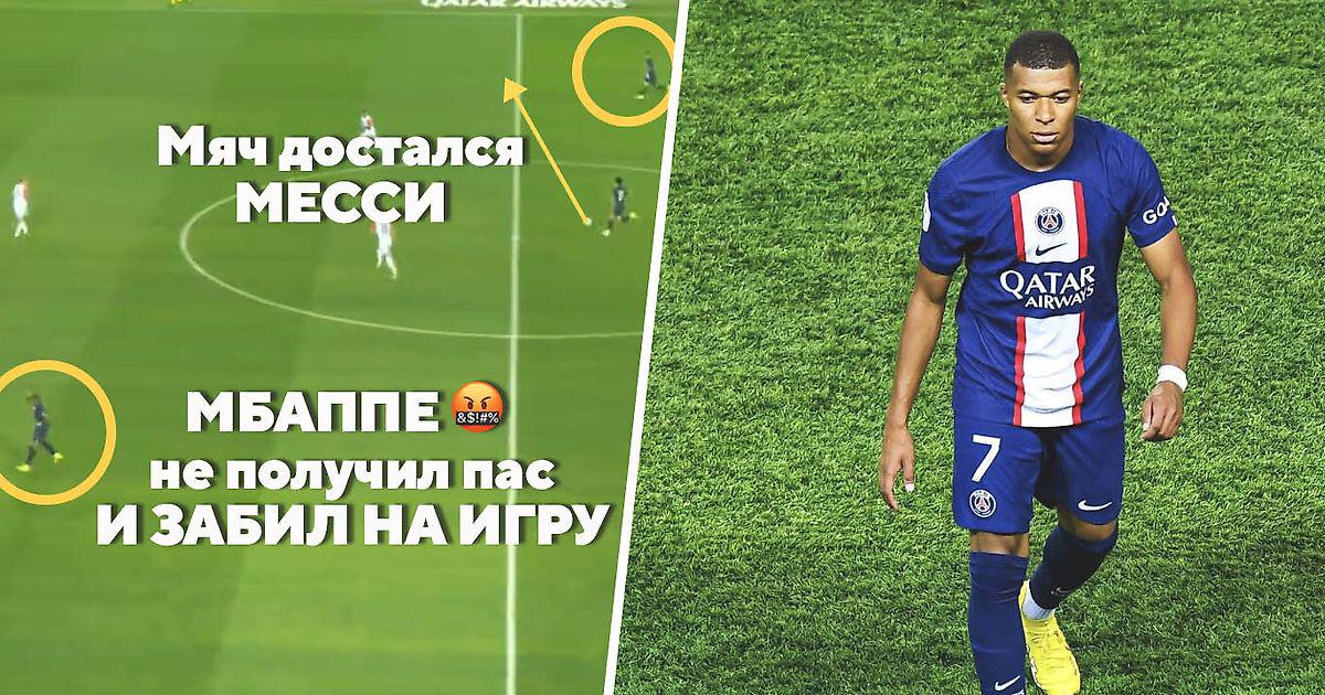 Полузащитник «ПСЖ» Витинья получил мяч и мог передать его Мбаппе на левый фланг или Лео Месси – на правый. Витинья выбрал Месси, когда Килиан это понял, то в раздражении опустил руки и замедлился. Пока «ПСЖ» продолжал атаковать, футболист просто бродил вокруг.