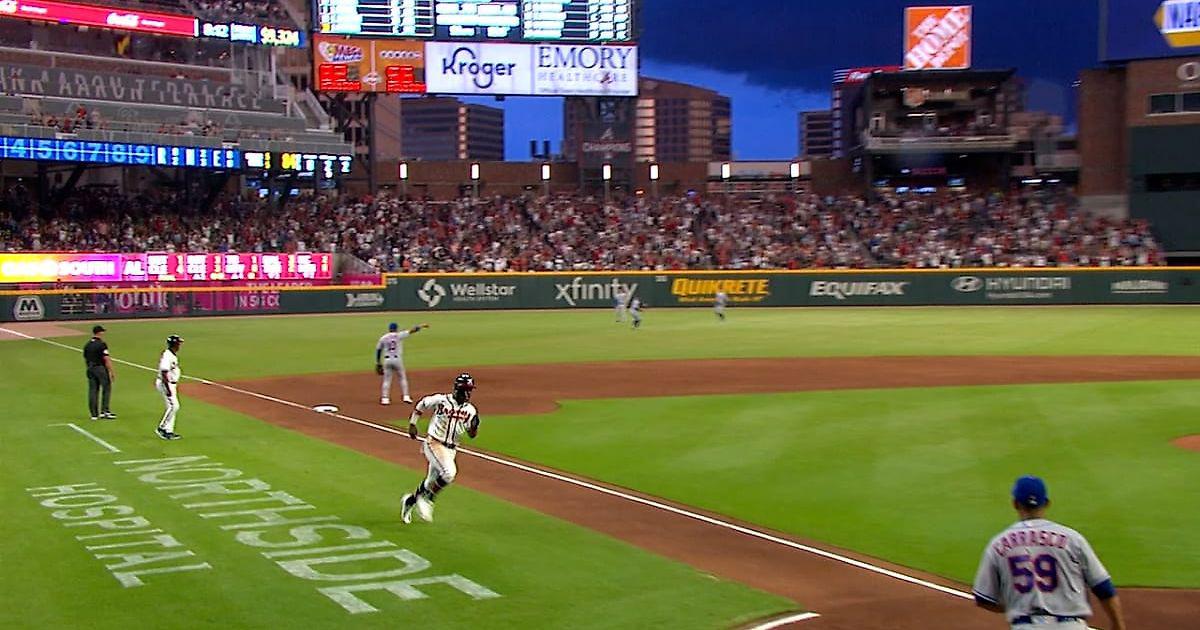 В 4 иннинге Рональд Акунья выбил дабл (15) и Вон Гриссом прибежал в дом.Затем Дансби Суонсон выбил сингл и Рональд Акунья прибежал в дом.