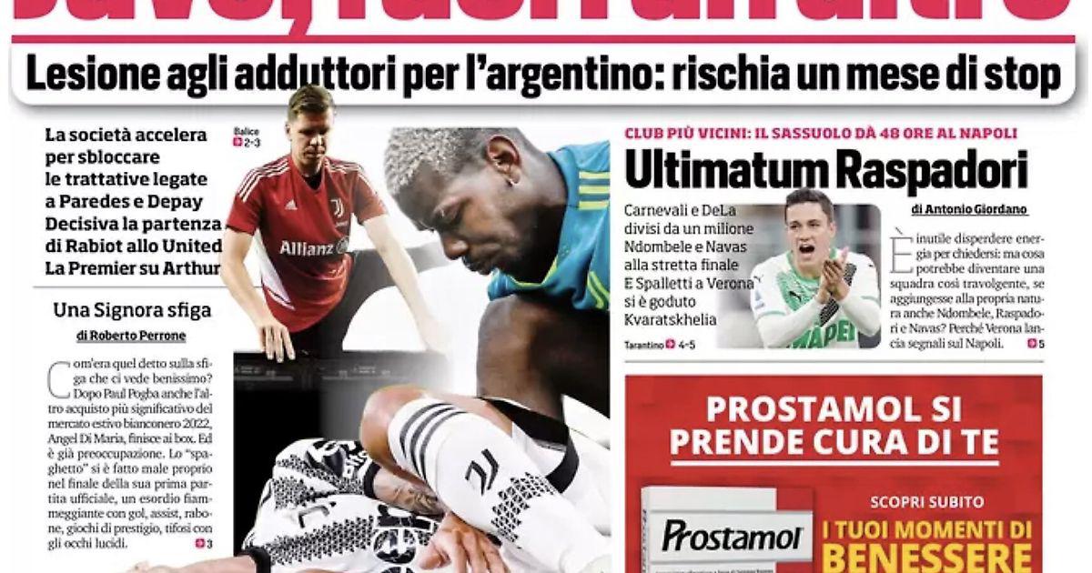 После Погба и Шченсны травмировался также Ди Мария: продолжается чрезвычайная ситуация для Аллегри. Растяжение приводящей мышцы у аргентинца: он рискует пропустить месяц. Клуб ускоряется, чтобы разблокировать переговоры, связанные с Паредесом и Депаем. Решающим становится уход Рабьо в «Юнайтед». Премьер-Лига нацелена на Артура.
