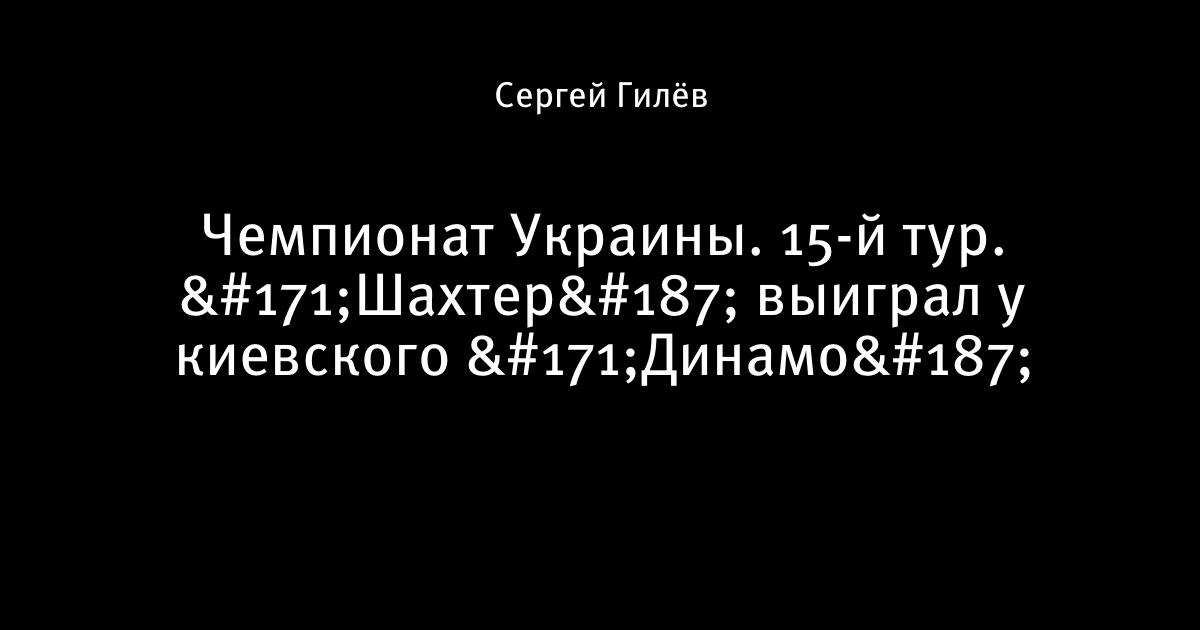 17 ноября 2008, 00:49 Чемпионат Украины. 15-й тур. «Шахтер» выиграл у киевского «Динамо» И другие матчи.Шахтер Динамо Киев 1:0 1:0 Вилльян (34) Автор Сергей Гилёв Этот пост опубликован в блоге на Трибуне Sports.ru. Присоединяйтесь к крупнейшему сообществу спортивных болельщиков! Другие посты блога Разборки в олимпийском Париже