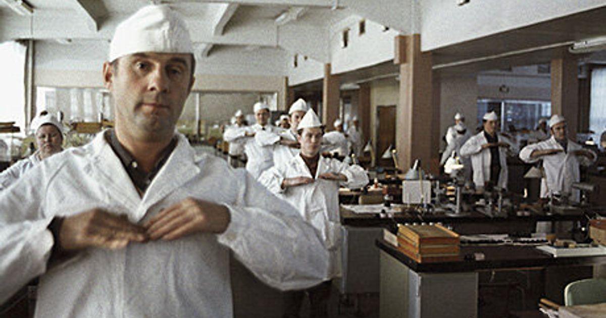 На московском заводе «Микромашина» в 1983 году ради производственной гимнастики останавливали конвейер.