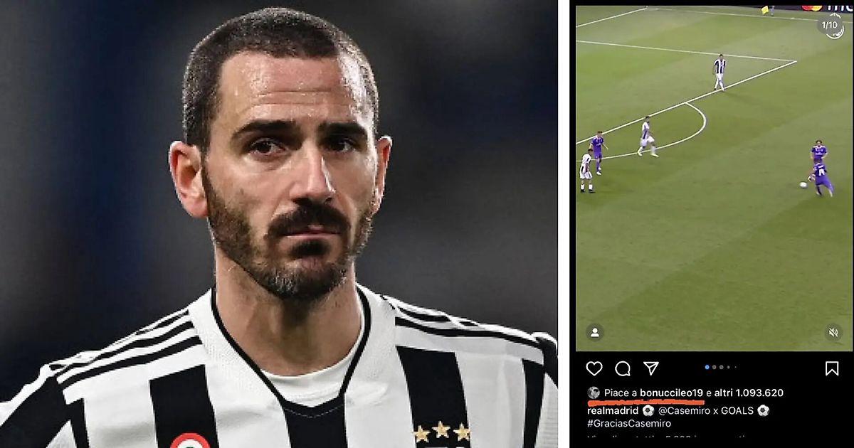 Бонуччи поставил лайк на пост мадридского «Реала», в котором «сливочные» сделали подборку лучших голов Каземиро за «королевский клуб». Все бы ничего, но на первом видео был запечатлен гол бразильца в ворота «Юве» в финале Лиги чемпионов.