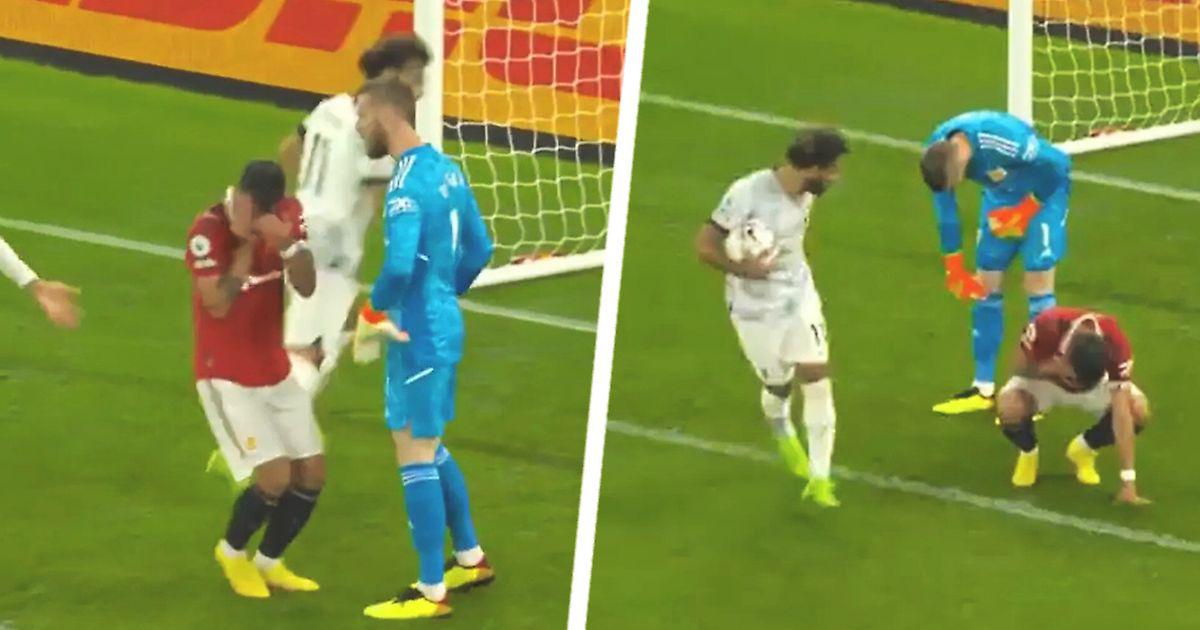 Когда Салах все-таки забрал мяч у Бруну, португалец не смог придумать ничего лучше, чем изобразить что египтянин ударил его по лицу. Арбитр на это не купился.