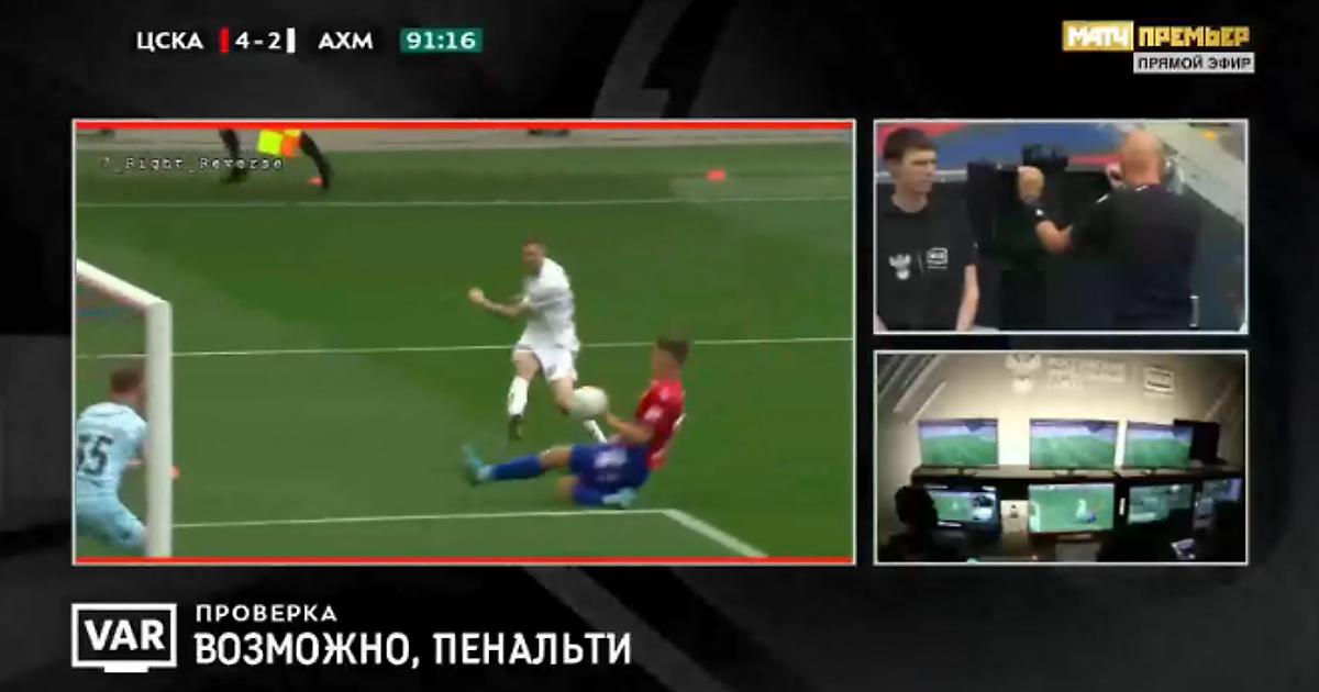 На 91-й минуте мяч попал в руку Игорю Дивееву после прострела в штрафной ЦСКА. Главный арбитр матча Сергей Карасев посмотрел повтор эпизода и решил не назначать 11-метровый.