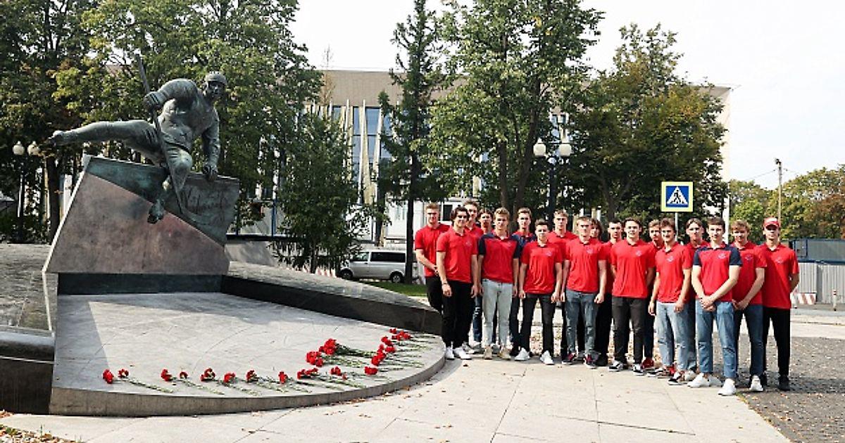 Красноармейцы не в первый раз перед сезоном посещают памятник Харламову, чьим именем назван главный трофей Молодёжной хоккейной лиги.