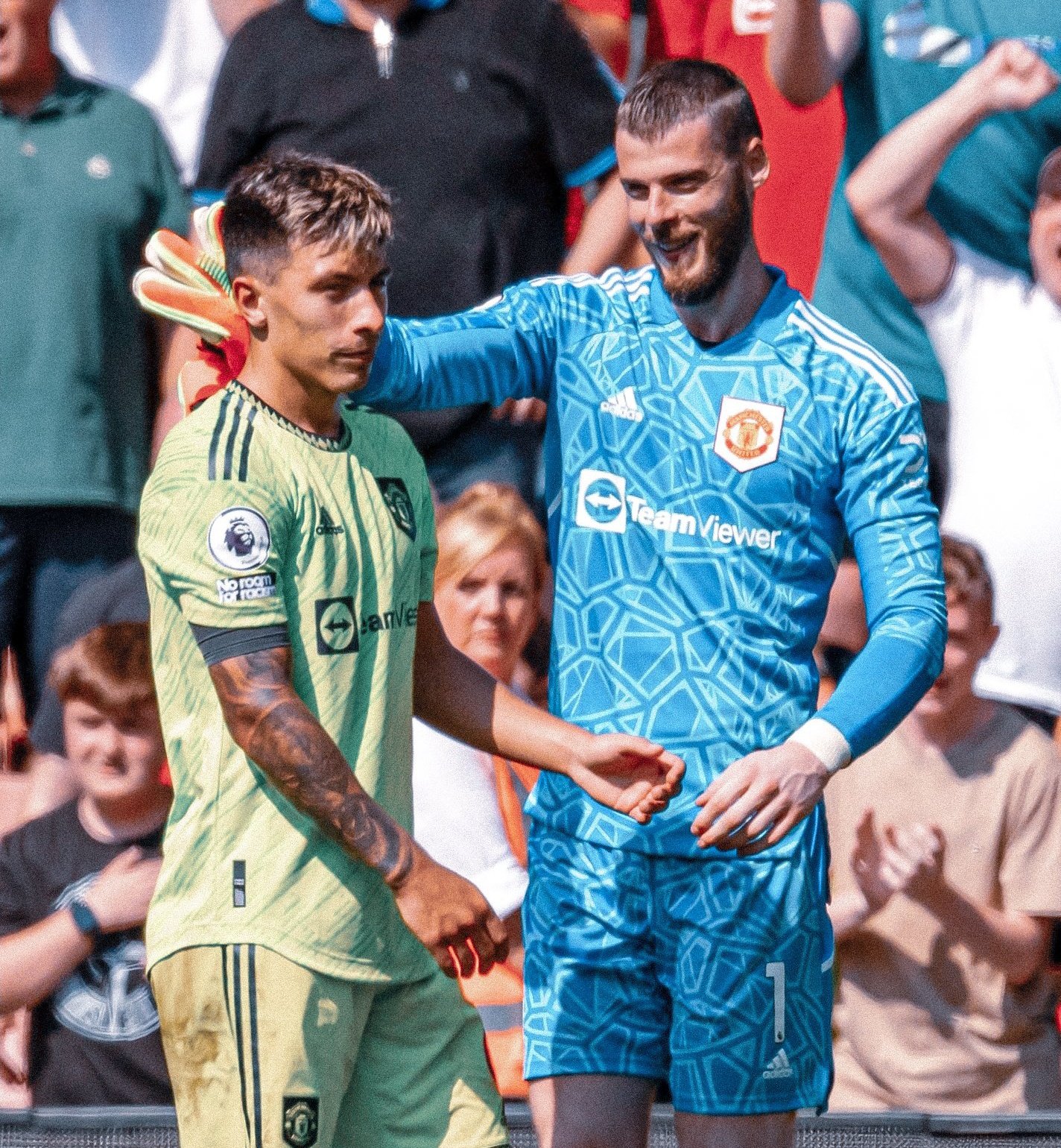 В матче помимо гола запомнился момент с сэйвом Давида Де Хеа, после которого вратаря чрезвычайно эмоционально поздравил аргентинский новичок «Юнайтед» Лисандро Мартинес.