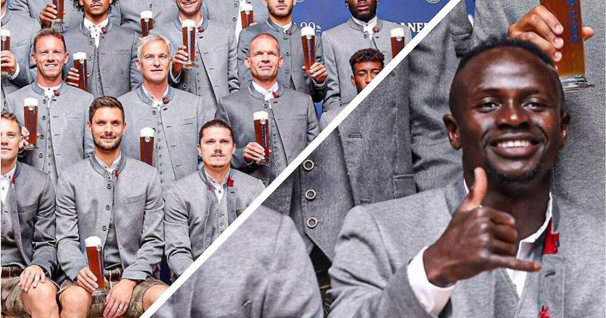 Этот год не стал исключением для чемпионов Бундеслиги, и Мане присоединился к своим товарищам по команде и тренеру Юлиану Нагельсманну в традиционной одежде.