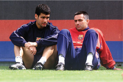 Вот такими мы были. Пеп Гвардиола и Жозе Моуринью вместе в «Барселоне» в лучшие дни.