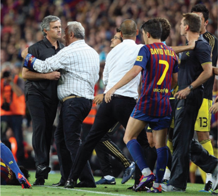 Потасовка на бровке в 2012 году, которая, как известно, закончилась тем, что Жозе Моуринью ткнул в глаз помощника главного тренера «Барселоны» Тито Виланову.