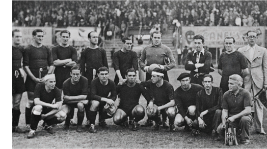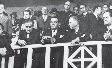 Президент «Барселоны» Жозеп Суньоль (справа, в центре), убит фашистскими войсками на мадридском фронте 6 августа 1936 года.