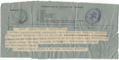 «Я убедительно прошу утвердить приказ, запрещающий подписание контрактов с иностранными игроками, как это было предложено сей делегацией. Я считаю эту меру необходимой для удовлетворения и соблюдения приличий в национальном футболе, а также для того, чтобы избежать неудобных отношений и ситуаций». Режим вмешивается, чтобы предотвратить подписание Ди Стефано «Барселоной»... или «Мадридом». 1953 год.