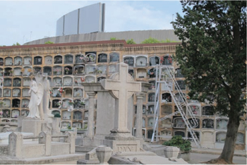 Северная часть «Камп Ноу» возвышается над стенами кладбища «Лес Кортс», места упокоения некоторых величайших игроков «Барселоны» и источника вдохновения утром перед clásico.