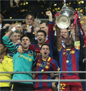 «Барселона» прошла полный круг: Снова «Уэмбли», девятнадцать лет спустя. Эрик Абидаль поднимает Кубок чемпионов 2011 года.