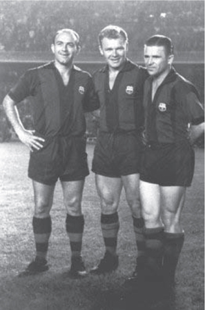 Запретная фантазия. Альфредо Ди Стефано и Ласло Кубала вместе выступали за «Барселону». Ди Стефано и Ференц Пушкаш надевают футболку blaugrana на показательный матч Кубалы против «Стад де Реймс».