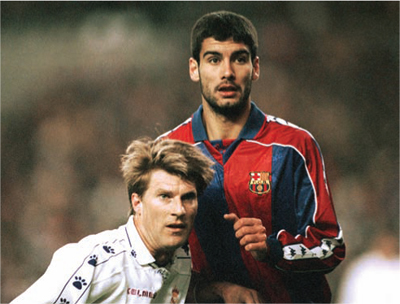 «Барселона» выходит в финал Кубка чемпионов 1986 года по пенальти, и мальчик подающий мячи выбегает на поле, чтобы попросить футболку Виктора Муньоса... мальчишку зовут Пеп Гвардиола.