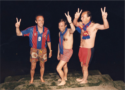 Вице-президент «Барселоны» Жоан Гаспар празднует успех в Кубке чемпионов 1992 года поздним ночным заплывом в Темзе.