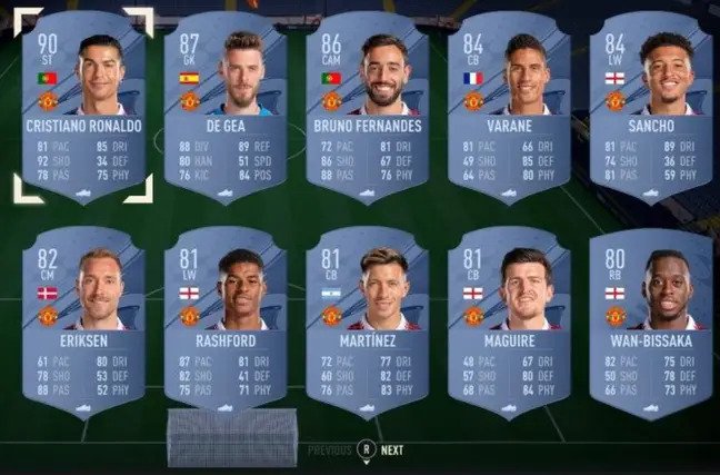 Рафаэль Варан и Джейдон Санчо имеют рейтинг 84, в то время как Кристиан Эриксен и Антони оба имеют рейтинг 82, опережая Маркуса Рэшфорда, Лисандро Мартинеса и Харри Магуайра (81).