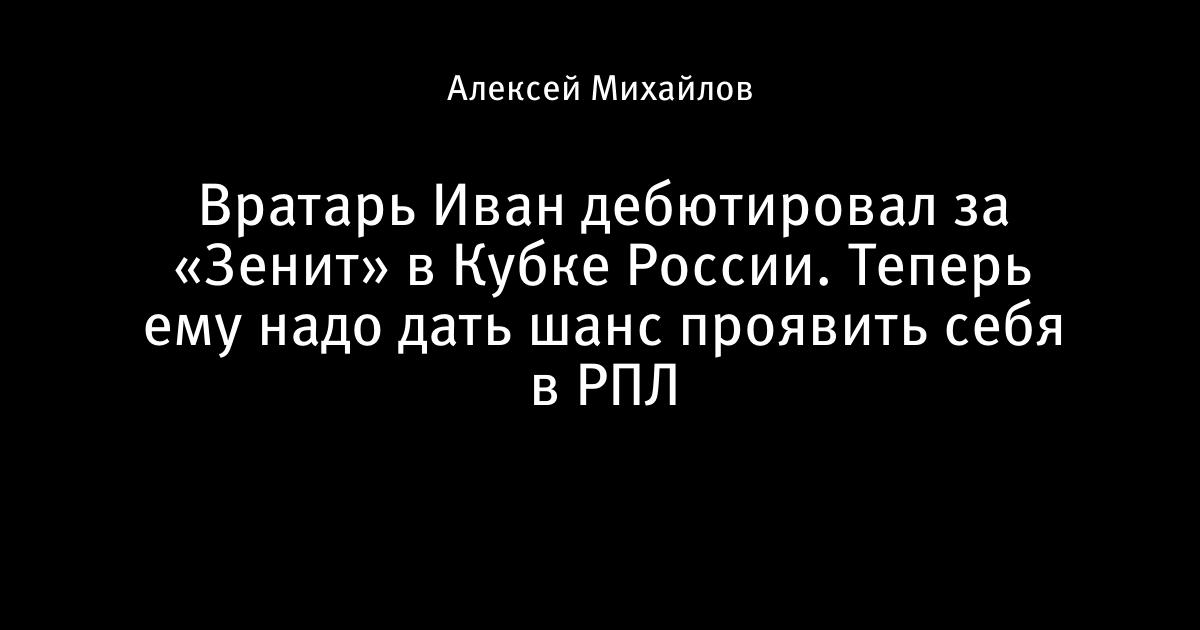 Вратарь Иван дебютировал за «Зенит» в Кубке России. Теперь ему надо дать шанс проявить себя в РПЛ