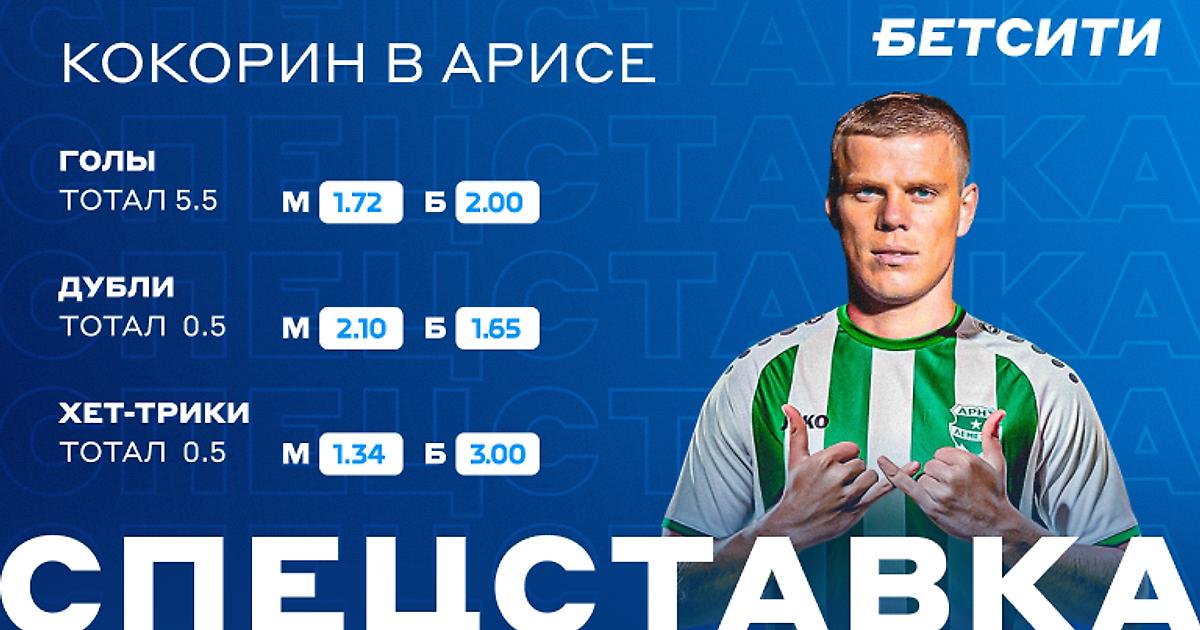 - Количество дублей. Сделать ставку на то, что Кокорин оформит хотя бы один дубль в составе «Ариса» можно за 1.65. Противоположный исход оценивается котировкой 2.10.
