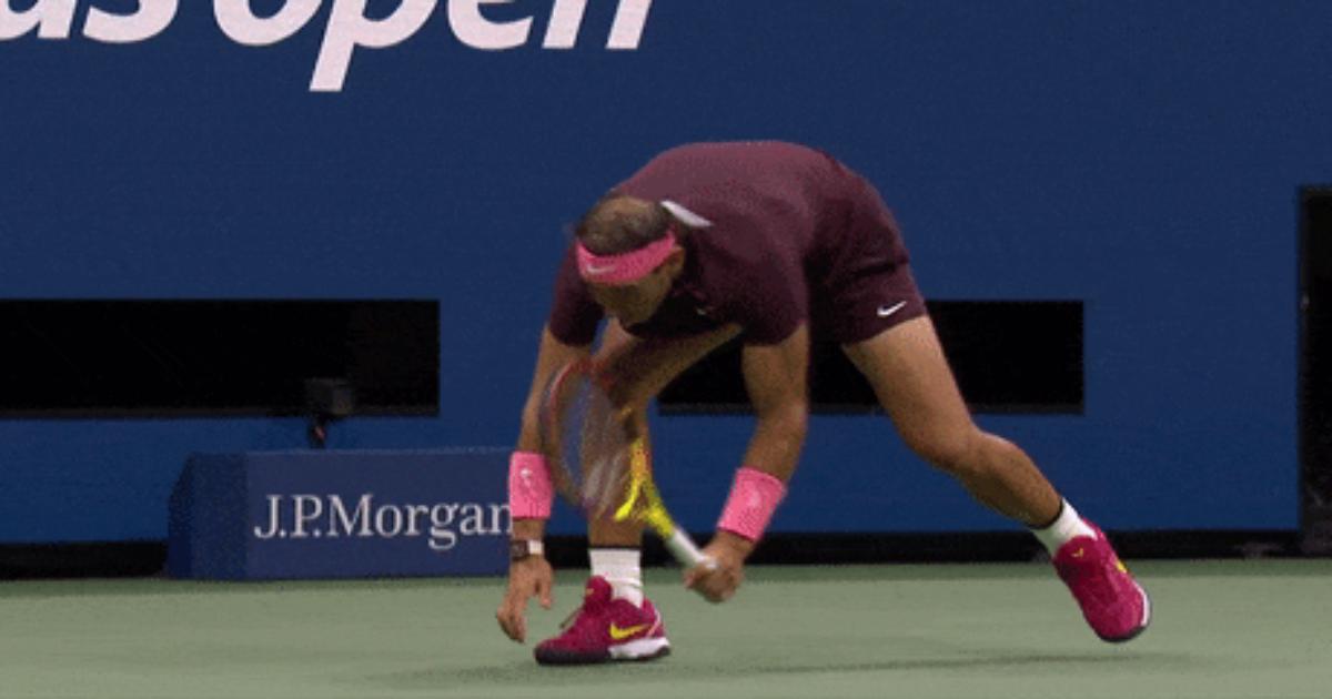 В четвертом сете Рафа сам себе нанес травму. Он тянулся за мячом, отбил его, но потом направил ракетку вниз – она ударилась об корт и отскочила ему в лицо.