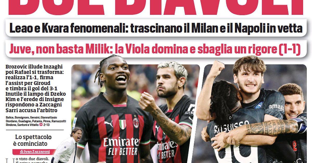 Португалец перевернул «Интер» (3:2), грузин остановил «Лацио» (1:2). Леау и Квара – феноменальны: тащат «Милан» и «Наполи» на вершину. Брозович подарил ложную надежду Индзаги, затем Рафаэл всё поменял: реализовал 1:1, сделал ассист на Жиру и поставил печать голом на 3:1. Ненужная вспышка Джеко. Ким и наследник Инсинье ответили Дзакканьи. Сарри обвиняет арбитра.
