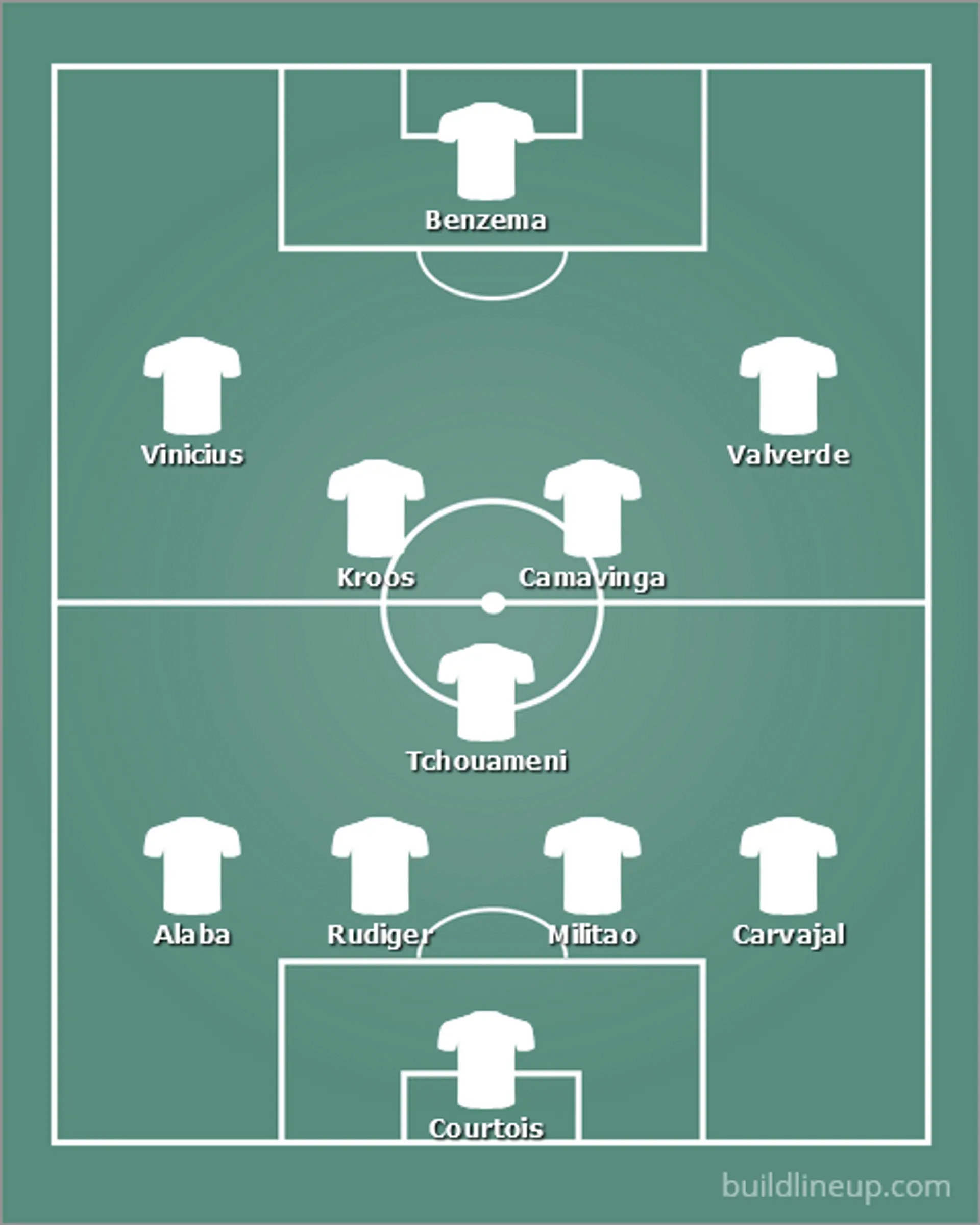 В таком случае Давид Алаба займет место левого защитника, тогда как Антонио Рюдигер и Эдер Милитао станут центральными защитниками.