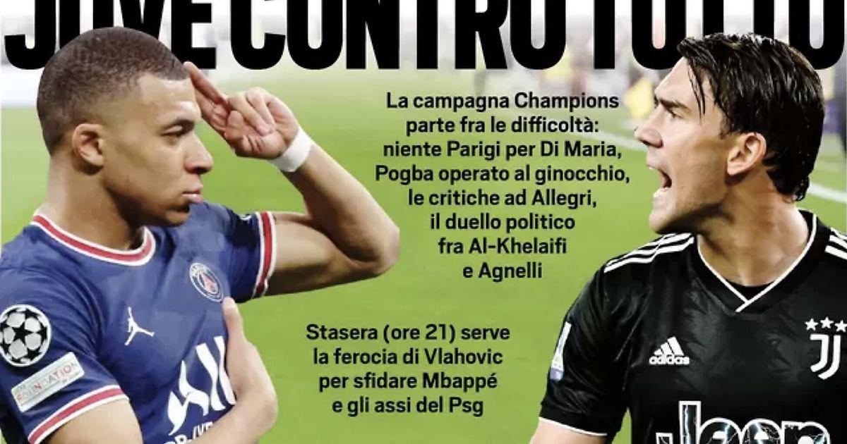 Этим вечером (21:00 СЕТ) необходима кровожадность Влаховича, чтобы сразиться с Мбаппе и звёздами «ПСЖ». Кампания в Лиге Чемпионов начинается с трудностей: никакого Парижа для Ди Марии, Погба прооперирован на колене, критика в адрес Аллегри, политическая дуэль между Аль-Хелайфи и Аньелли.