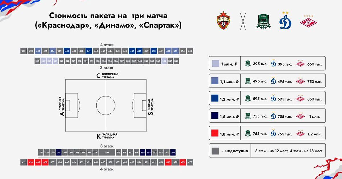ПФК ЦСКА принял решение о проведении специальной акции – «пакетное предложение» на три домашних матча клуба в рамках чемпионата России. Предложение будет действительно при аренде скайбокса на домашние матчи с «Краснодаром», «Динамо» и «Спартаком». Теперь вы сможете арендовать VIP-ложу вместимостью от 12 до 18 человек по более выгодным ценам. Аренда ложи на самые зрелищные матчи сезона — это отличная возможность пригласить ваших коллег или партнёров на футбол, обсудить ваши дела в неформальной обстановке, а также отлично провести время в узком кругу. Посмотреть доступность лож можно по ссылке: https://pfc-cska.com/tickets/hospitality/ Забронировать ложу Вы можете по ссылке выше или по телефону: +7 (495) 128 44 11 До встречи на ВЭБ Арене!