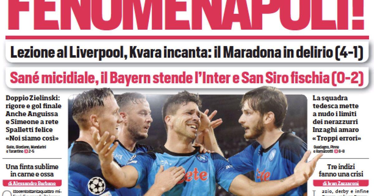 Победа «Наполи» над «Ливерпулем», поражение «Интера» от «Баварии», а также сегодняшние матчи «Ромы», «Лацио» и «Фиорентины» – в обзоре заголовков итальянских спортивных изданий в блоге «В гостях у Кальчо».
