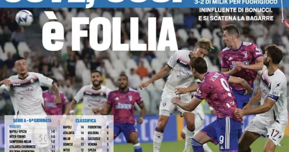 «Салернитана», выйдя вперёд 2:0, была отыграна разочаровывающими Бьянконери: но ВАР на 95 минуте отменил гол на 3:2 от Милика из-за незначительного офсайда Бонуччи. И началась потасовка.