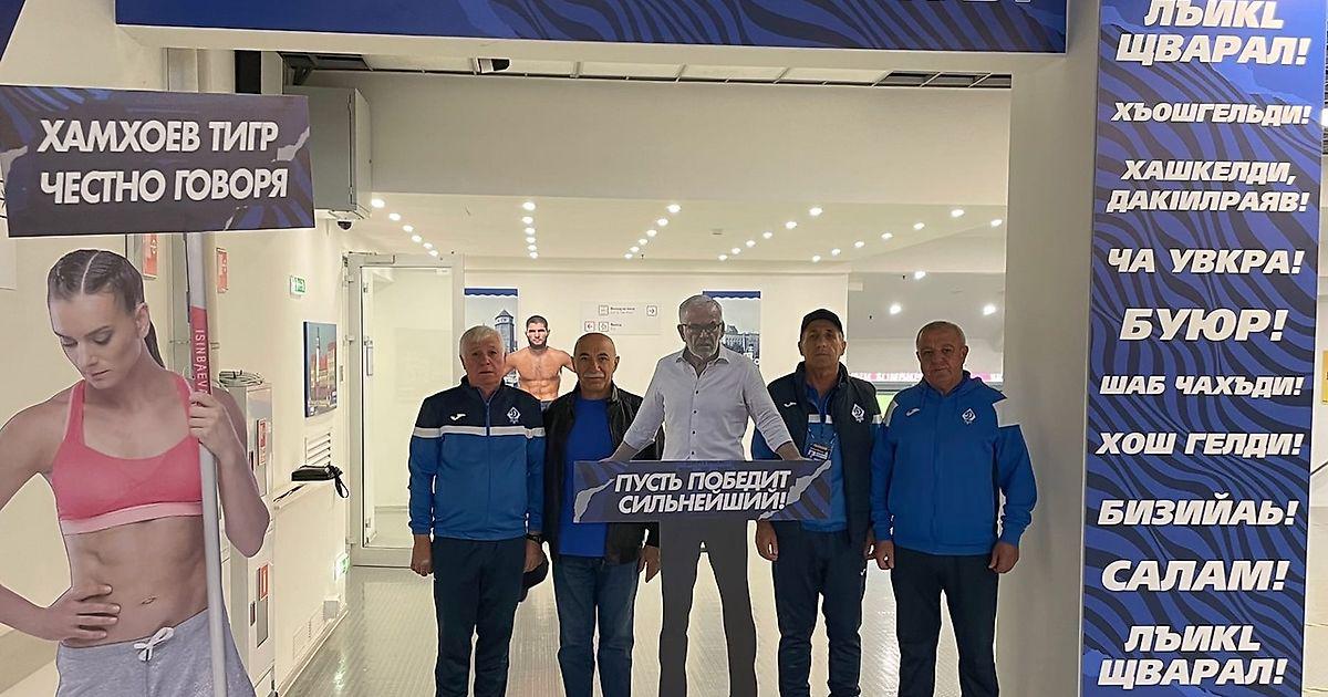 При входе на стадион команду гостей встречали фигуры знаменитых людей связанных с Дагестаном. Первым был Хабиб Нурмагомедов, за ним следовала Елена Исинбаева и завершал эту тройку Гаджи Муслимович Гаджиев. У каждого из перечисленных была табличка с определенным посылом.
