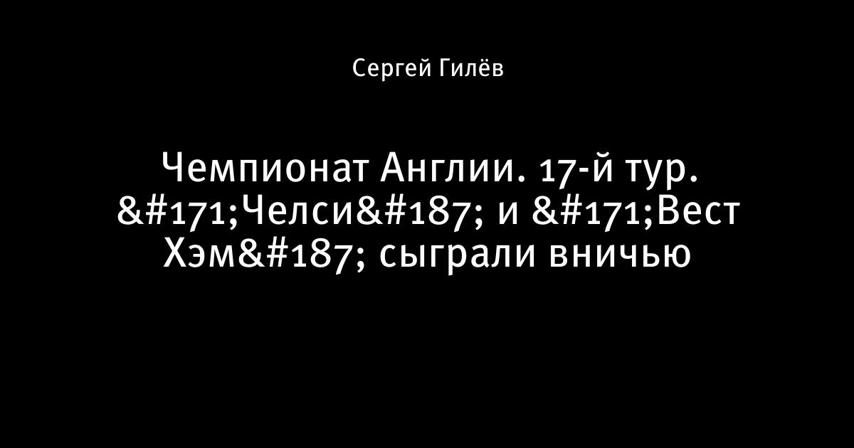 Чемпионат Англии. 17-й тур. «Челси» и «Вест Хэм» сыграли вничью