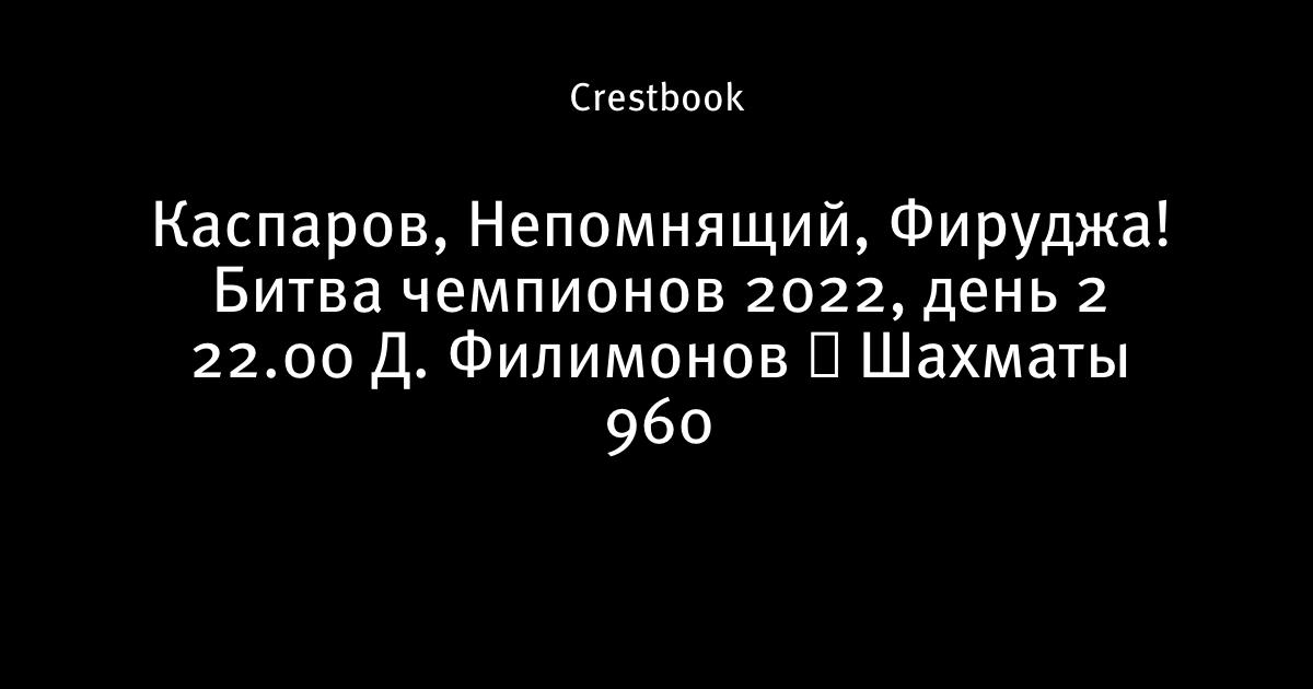 Каспаров, Непомнящий, Фируджа! ⚔ Битва чемпионов 2022, день 2 ⏰ 22.00 🎤 Д. Филимонов ♕ Шахматы 960